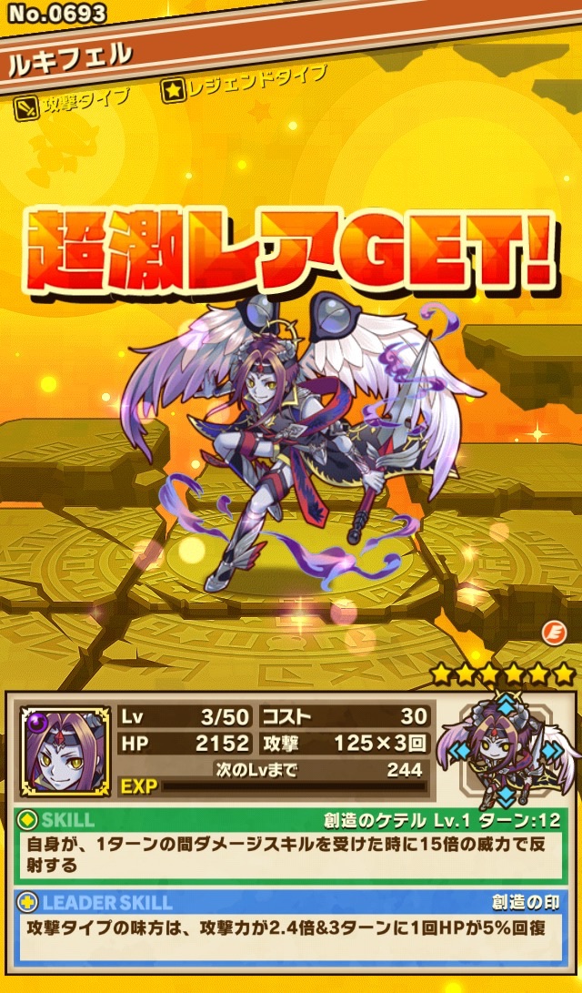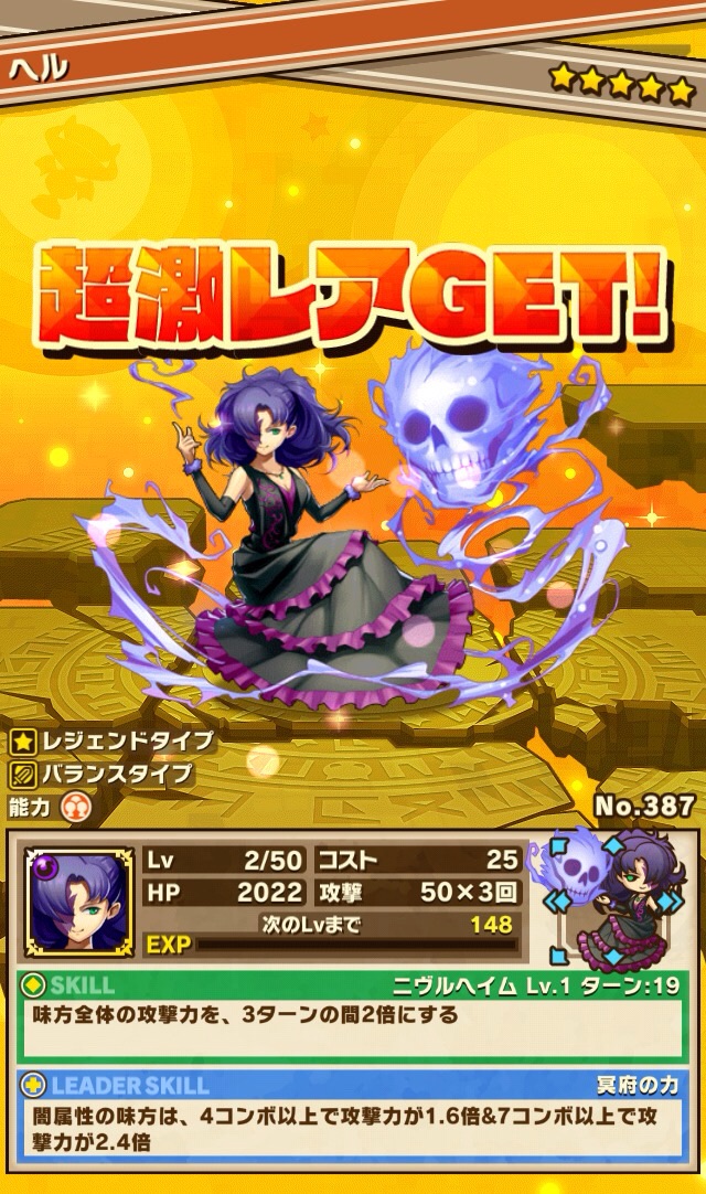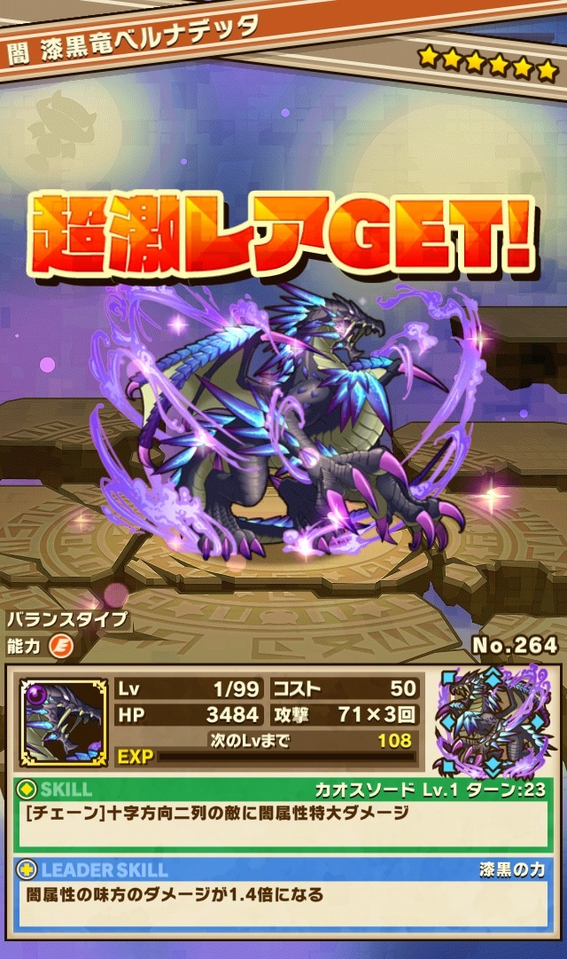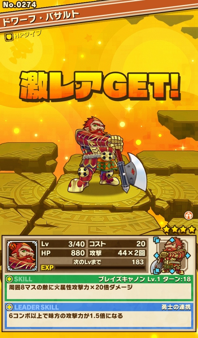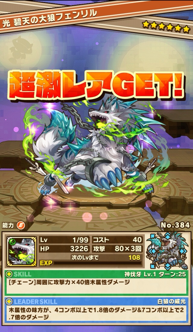 おそらく、次は闇フィルギャみたいなの来る気がする。その後、難易度冥くらいの降臨ダンジョンがあって、そこでゲット出来るヴァルキリーみたいなのに2体とも進化素材で使うのかなぁ、とか考えてる笑