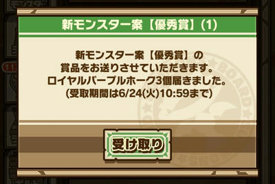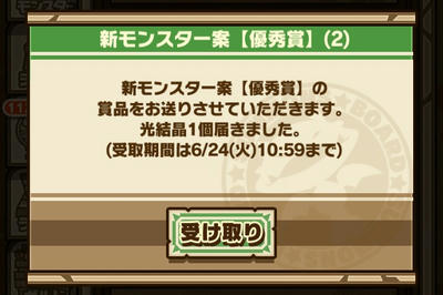 メールを読んでみると、以前応募した、新モンスター案の賞品が!