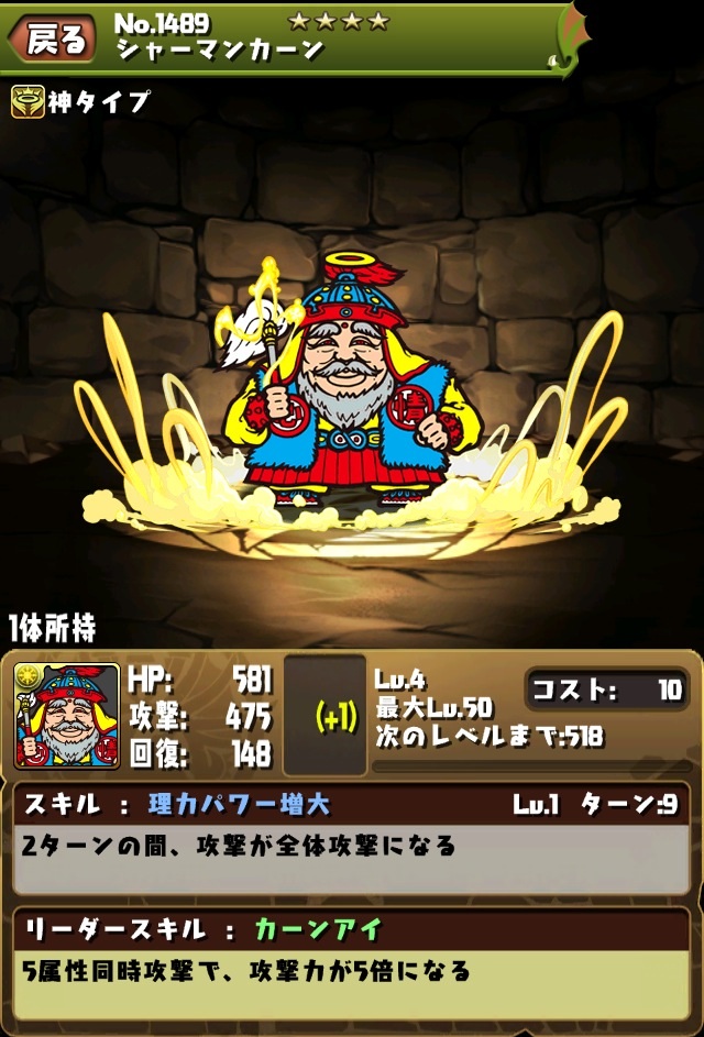 現在所持している、多色を含めた攻撃倍率4倍以上のモンスターは、4属性以上で4倍の悟飯のみ。5倍の倍率を持つモンスターだと、HP制限がある、五右衛門とUFOのみ。なので、自分としては5色で5倍のモンスターはゲット出来たらすごく助かる。その分、5色無いと全く無意味なのもあるが。。。