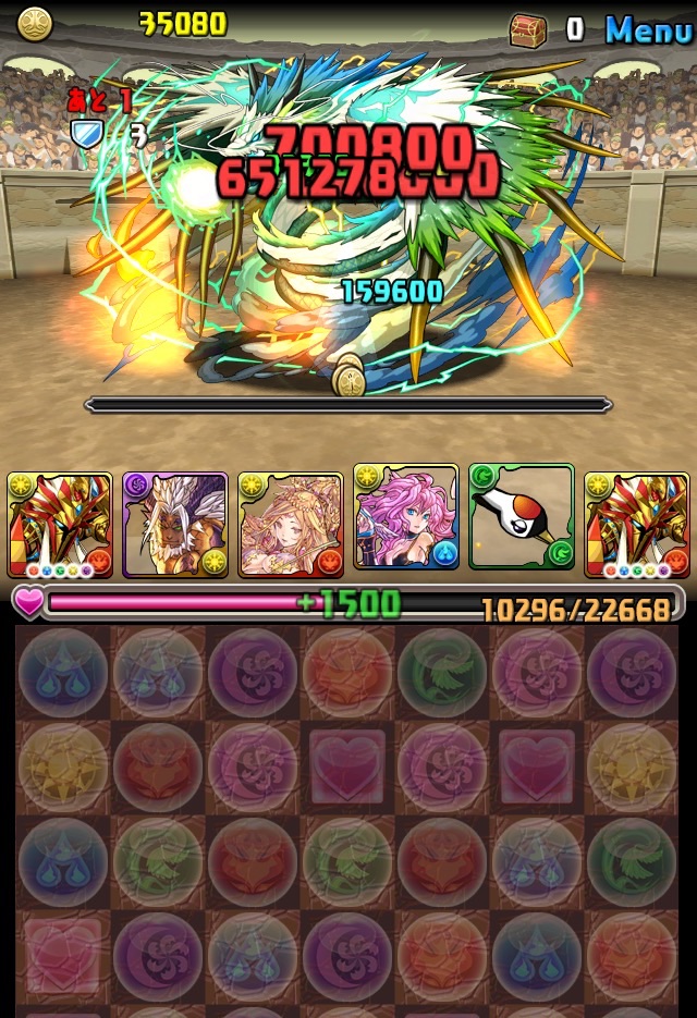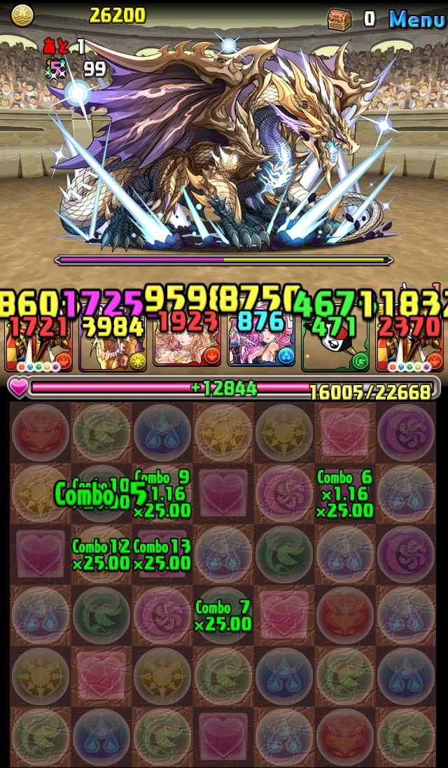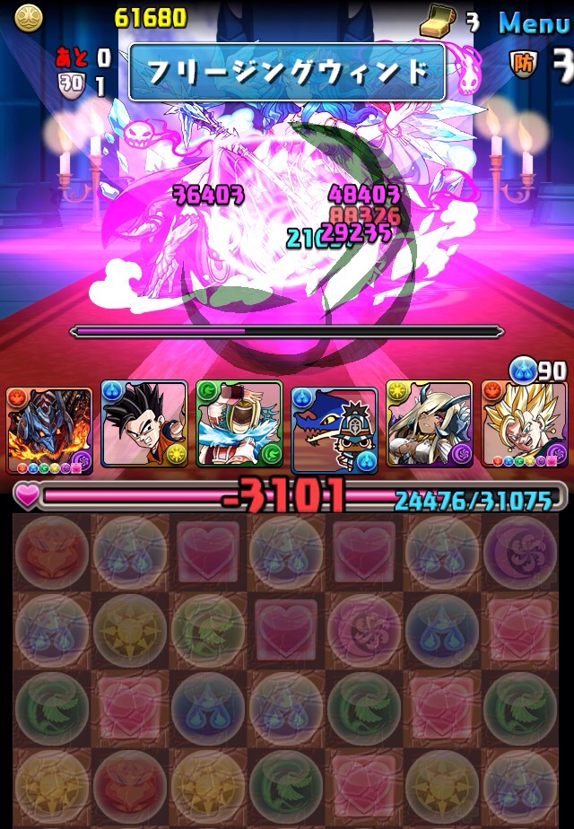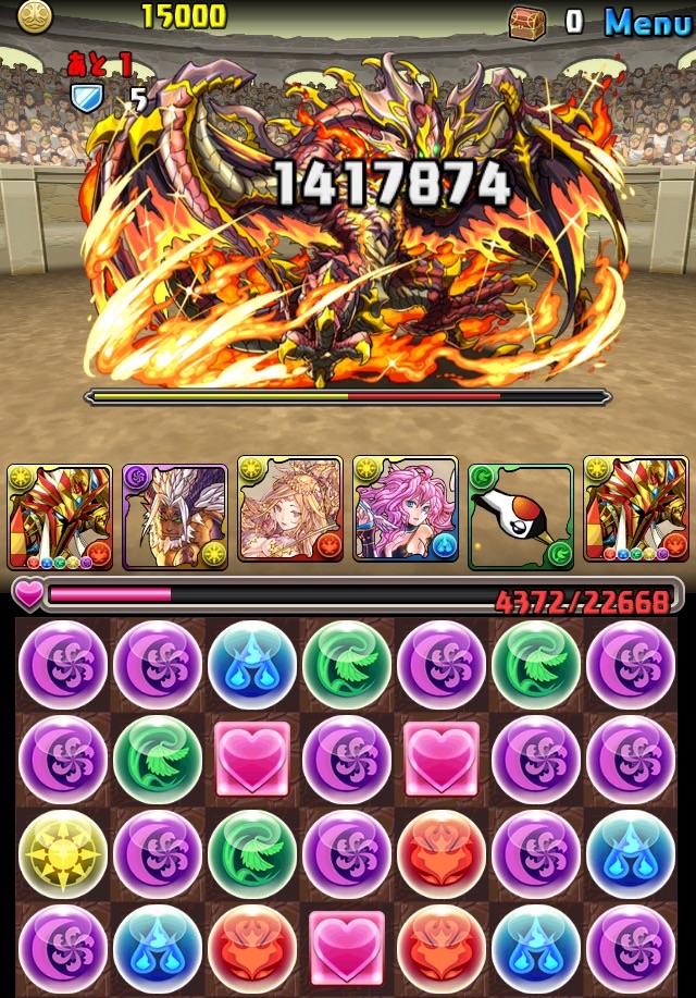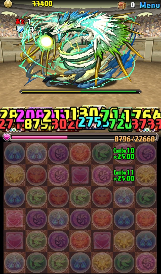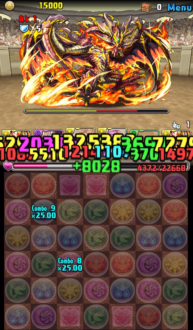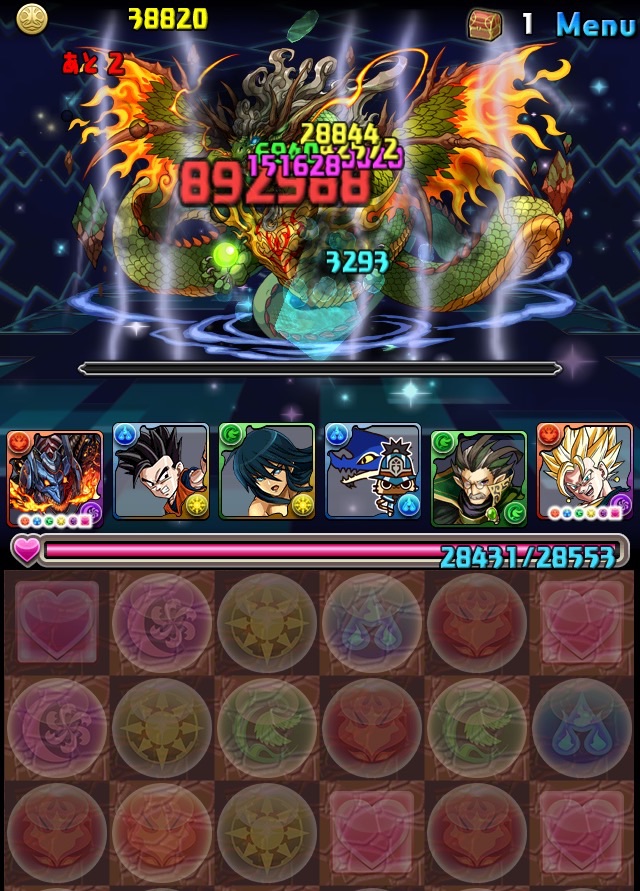 残っていた紫龍のエンハンスから、全力パズルで一気にここまで減らす!!!いい感じ!