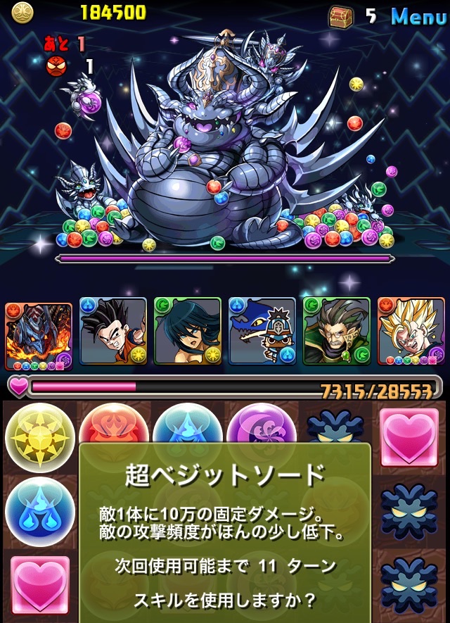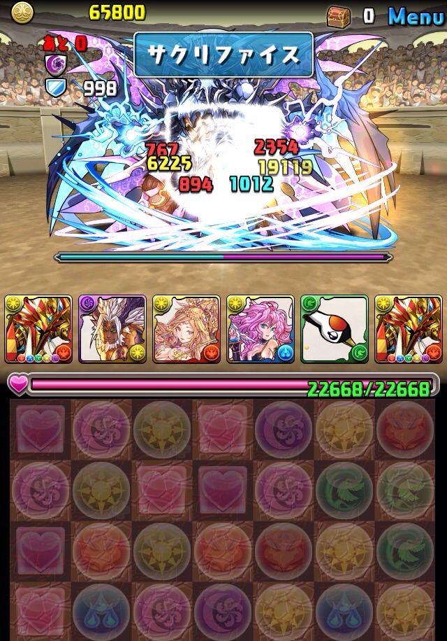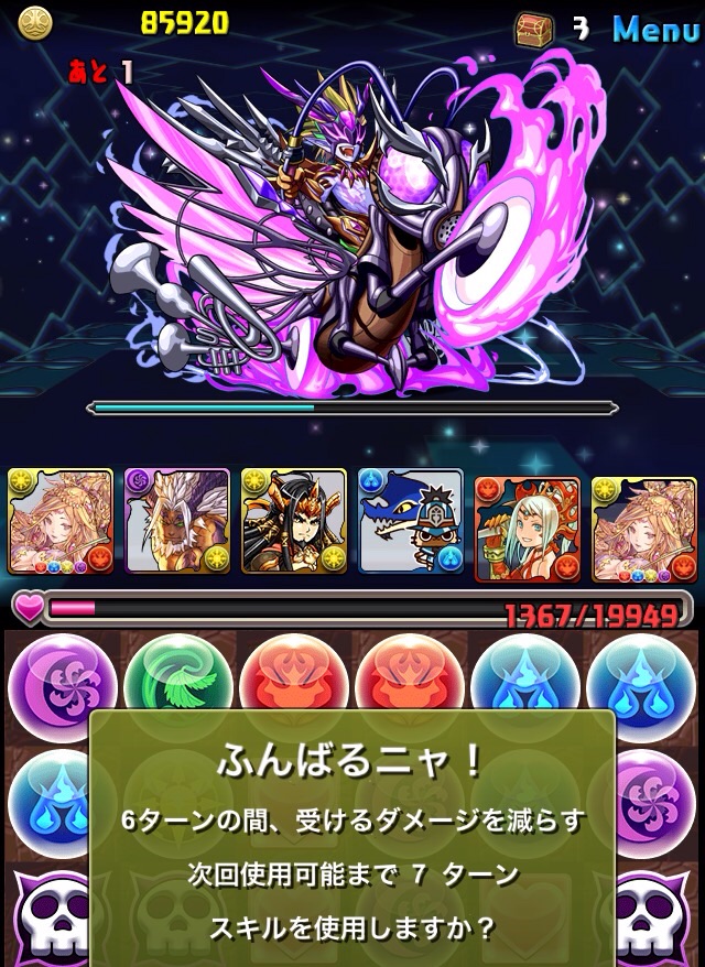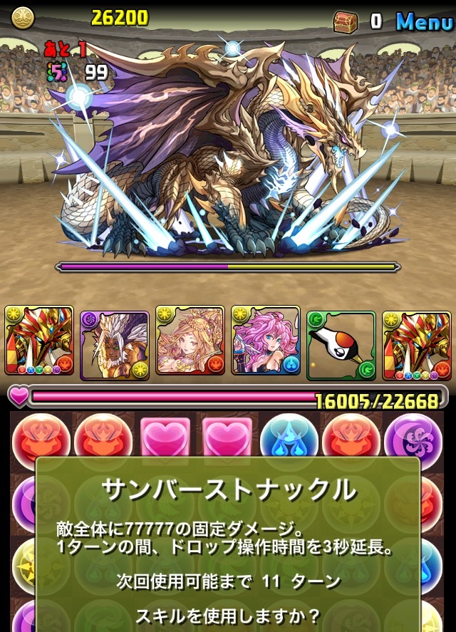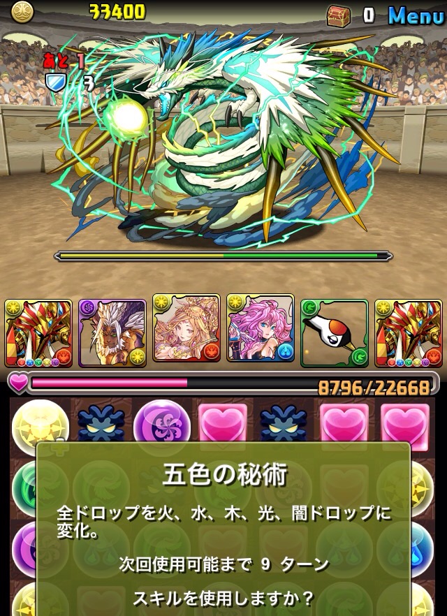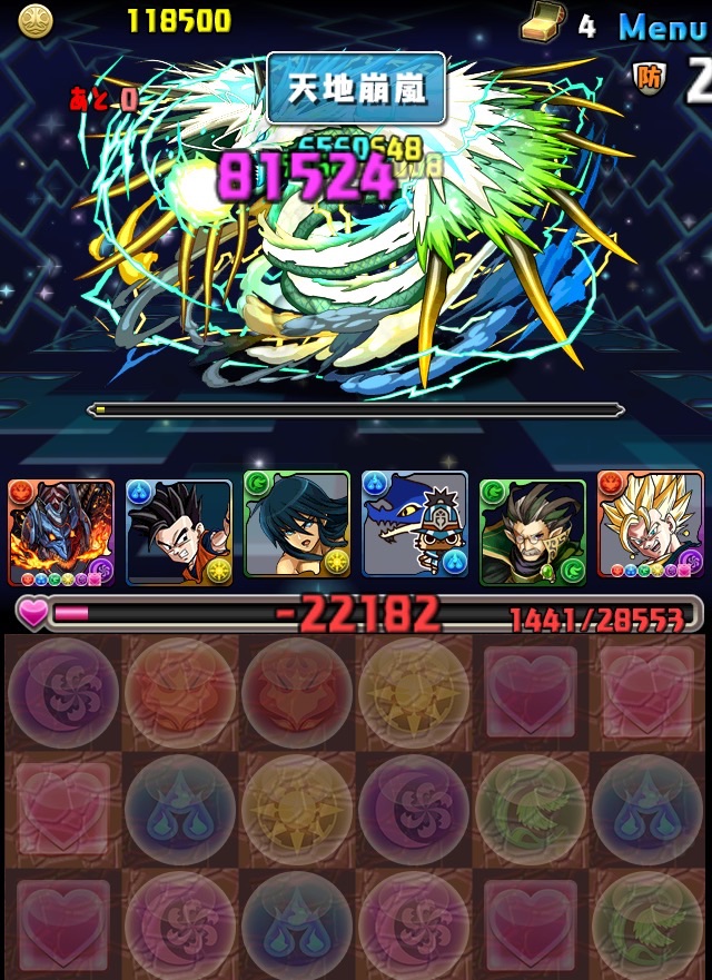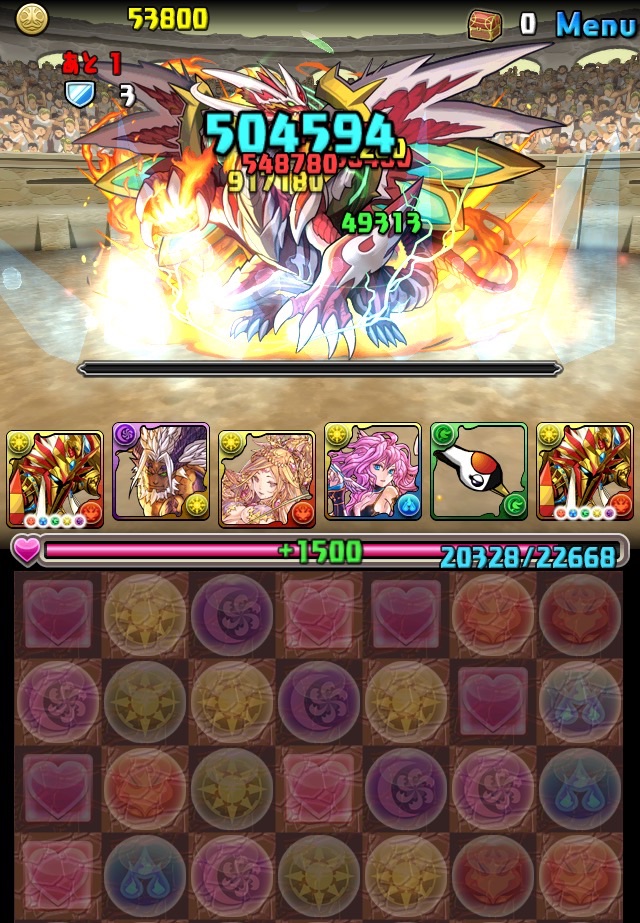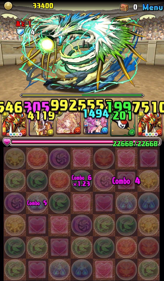 残っていた紫龍のエンハンスから、全力パズルで一気にここまで減らす!!!いい感じ!