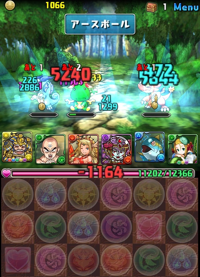 このPT!この前引いたコラボガチャが3体。全員レベルマまで育て上げた!ラーン先生×メイメイで、5色決めれば18.5倍というPT。操作時間延長も2個付いて、実質5秒パズル。1回負けはしたが、感触としては手応えを感じたため、もう1回行った!