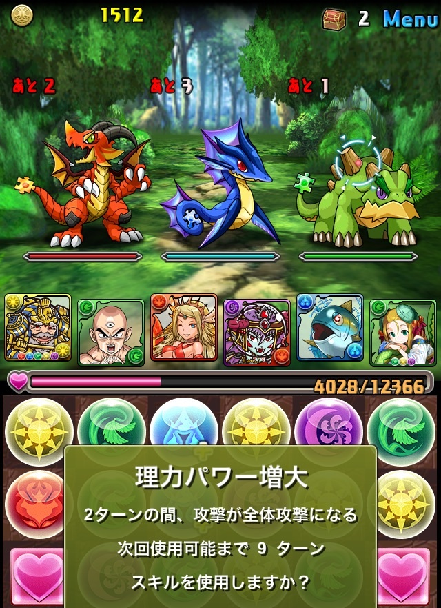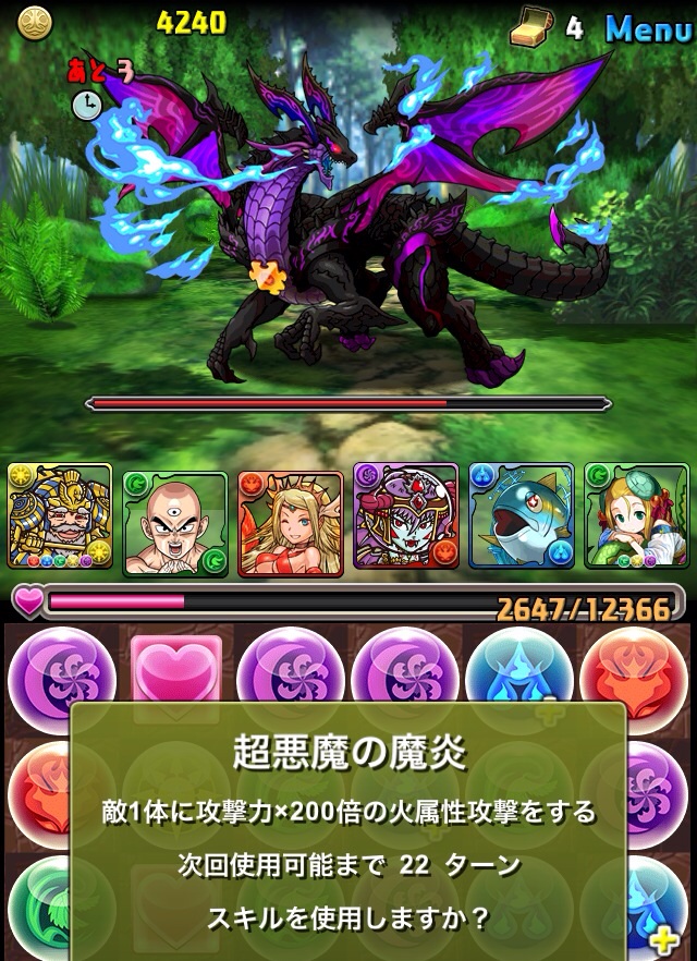 バトル2。今度は4体。上手いこと残ったため、出来るだけスキルを貯める。