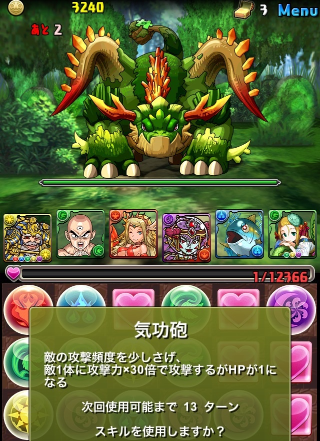 威嚇か気功砲使いたかったけど、気合いの5色で撃破!!