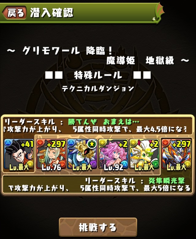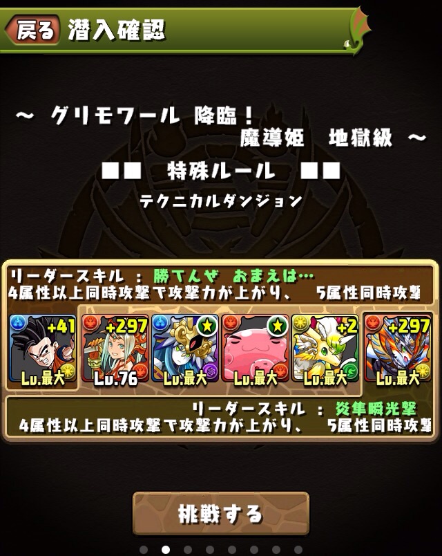 バトル1からフロアごとに色々な敵が現れて、かなり楽しめるダンジョンだなと思った。やっぱり光メタは強いなーと、居なかったらクリア出来てないよ、絶対w
