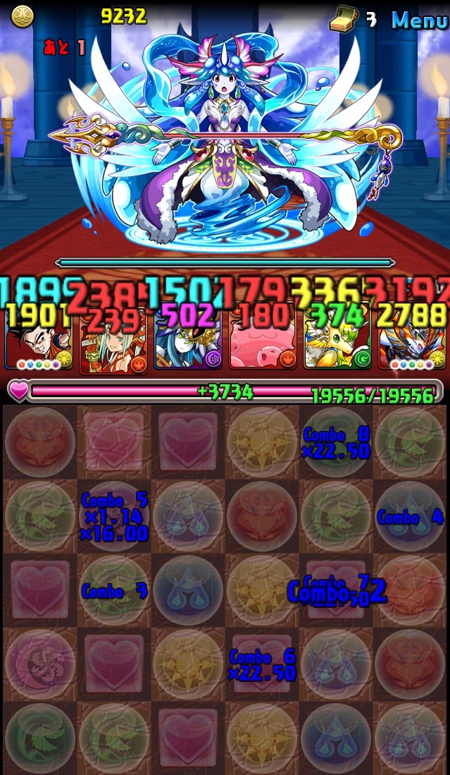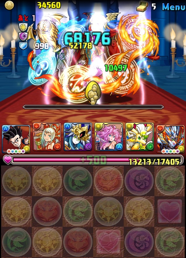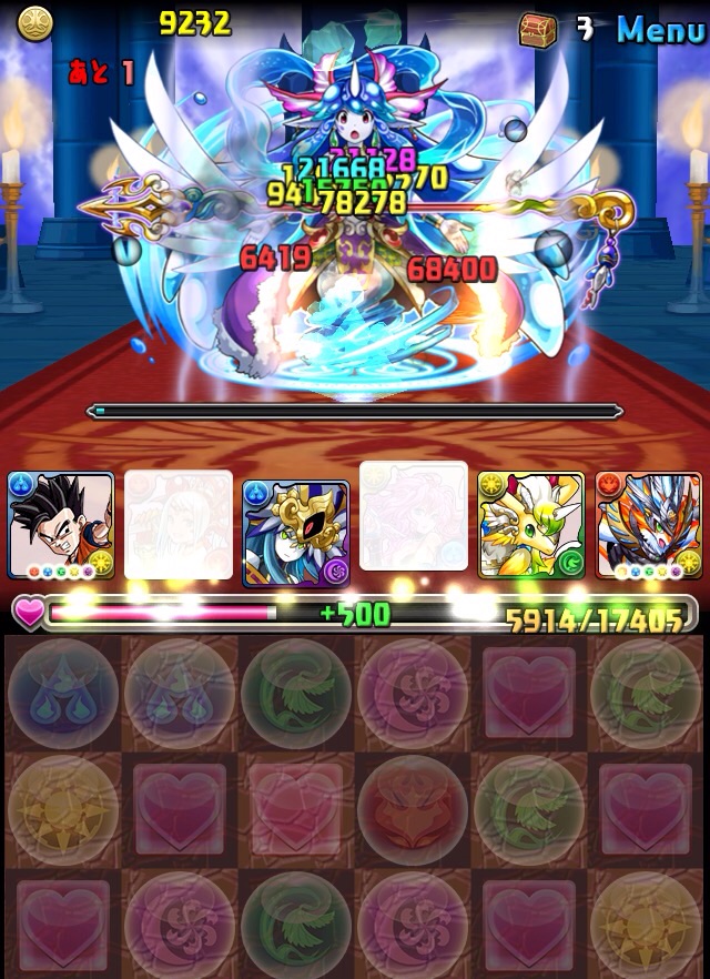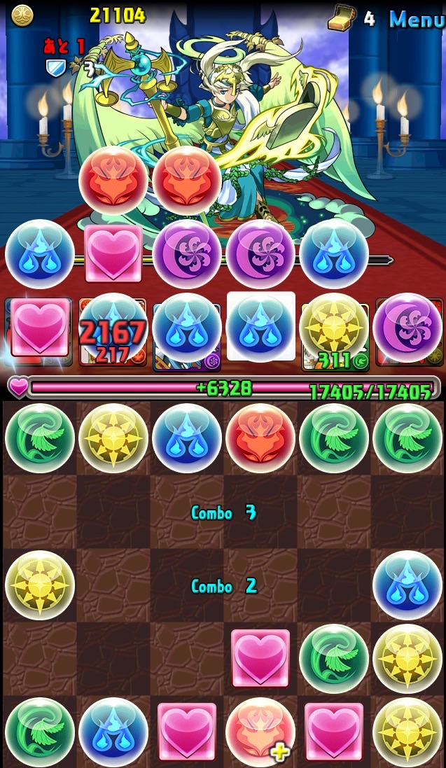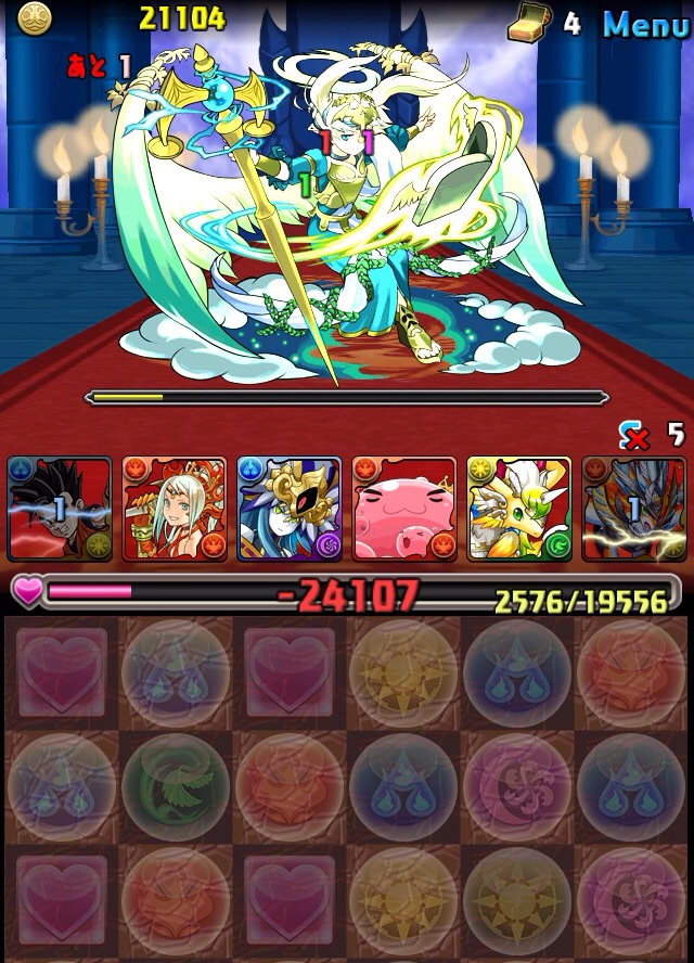 んで、パズル失敗で5色決まらず笑 強めの攻撃を食らう。