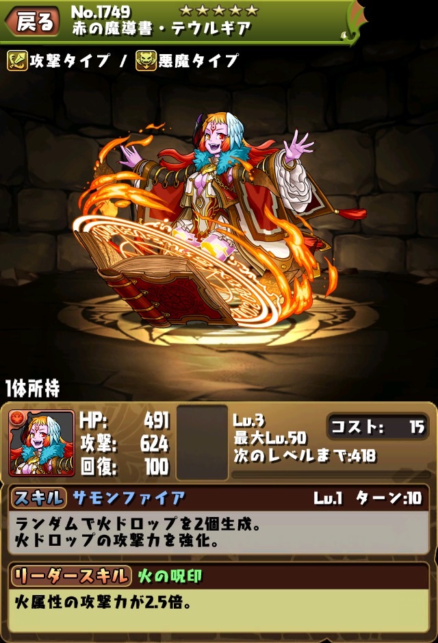 変換→ドロップ強化で最短5ターンのなかなか良いスキル。多色の色合わせや、染めたPTで活躍しそう。