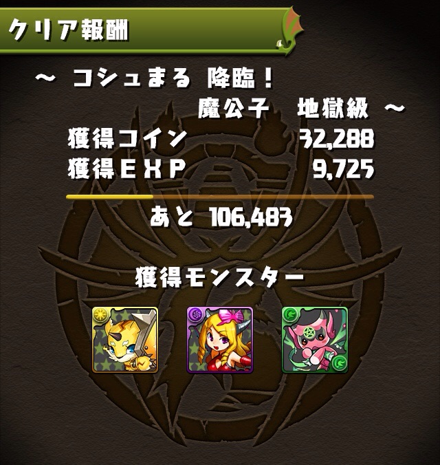 昨日の20時から始まった新降臨ダンジョン、コシュまる降臨。