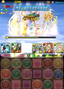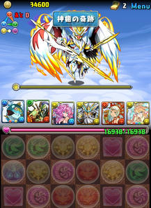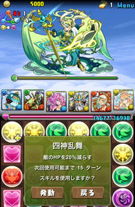 先制で3ターンスキル封印を食らう。4色決めながら、半分切らないように、さらに回復しながら削っていく。ソードオブマルクト13684ダメージが運良く来ず、ラスゴ→四神乱舞→きときと→攻撃態勢木で一気に削る!!!!