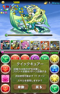 どのPTにも入るエキドナ。+を唯一振る努力をしていて、威嚇のスキルは必須。そして、光メタトロン。バインド耐性×2に加え、自動回復、バインド回復、スキルブースト×2を持つ優秀なモンスター。クイックキュアーはきっとどこかで役に立ってくれるはずだ。
