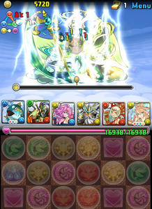 先制で状態異常無効を使ってくる嫌な奴。だけど、こいつが来てくれてほんとラッキーだったと思う。攻撃パターンは決まっているらしく、まずリーダーとフレンドが4ターンバインド食らう。その後、徐々にダメージが増えていって、4回目には50000オーバーのダメージが飛んでくるから、4ターン以内に撃破しなければならない。