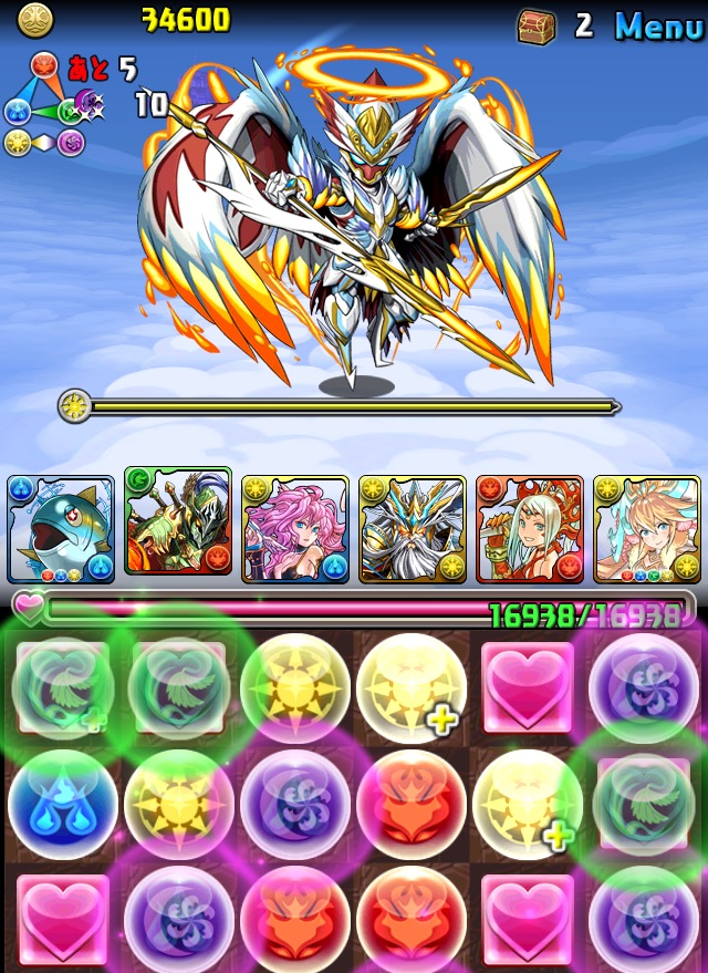 盤面には4色も、回復もある非常にいい!まず先制を食らうが、4色決めて、