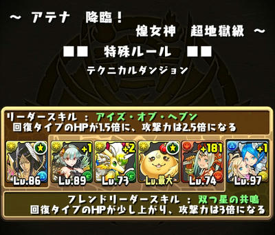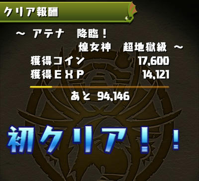 実はまだ一度も挑んでなくてNewマークが付いていた。正直アテナは必要ないと思っていたから。そして、超地獄級の名にビビッていて挑まずにいたのだった。。