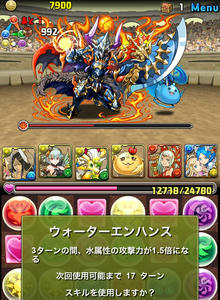HPを半分きって、火属性に変化したところで、ウォーターエンハンス!