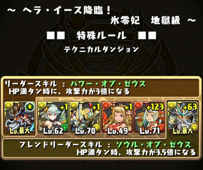 先週は石3個あった状態で、ノーコンクリア目指してエンジェリット狙いに行ったんですが、9回くらい行ってクリアすら出来ませんでした。挑むのは、覚醒ゼウスPTがほとんどでした。バトル1の落ちコンや、威嚇の使い所でミスしたり、ツキが無かったんですが、今回は11個全部使ってもいいから、必ず2体取る!!って意気込んで、友達にリーダーをゼウスにして!ってお願いしつつ苦労してゲットしました。