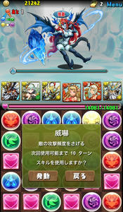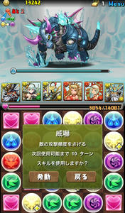 バトル5。カオスブリザードドラゴン。こいつ結構レアみたいですねw遭遇したら確定ドロップなのだとか。とりあえず、ラスゴがあと数ターンで溜まるので、威嚇しつつ殴っていきます。