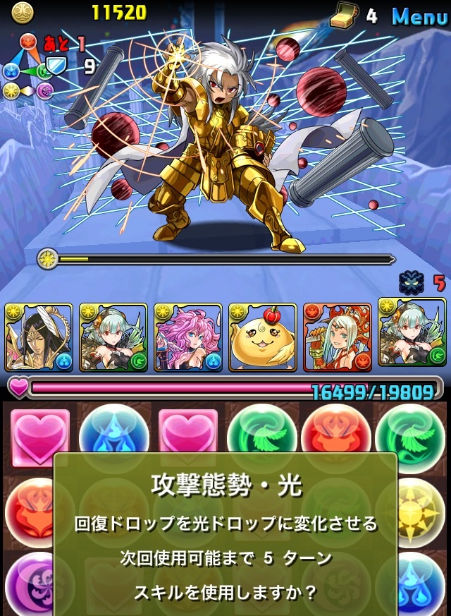 バトル4。アフロディーテ。こいつが曲者。毒を6つ作っては殴ってくるえぐいやつ。